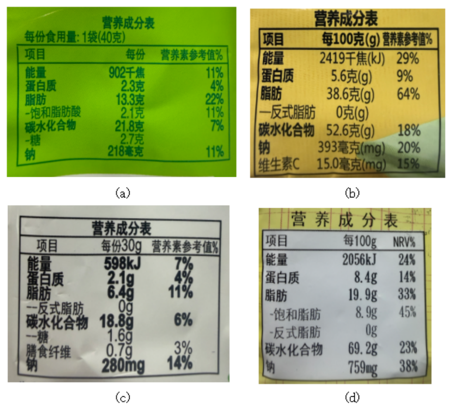 l Experimental Samples: Potato chips, French fries, Shrimp crackers, and Crispy noodles