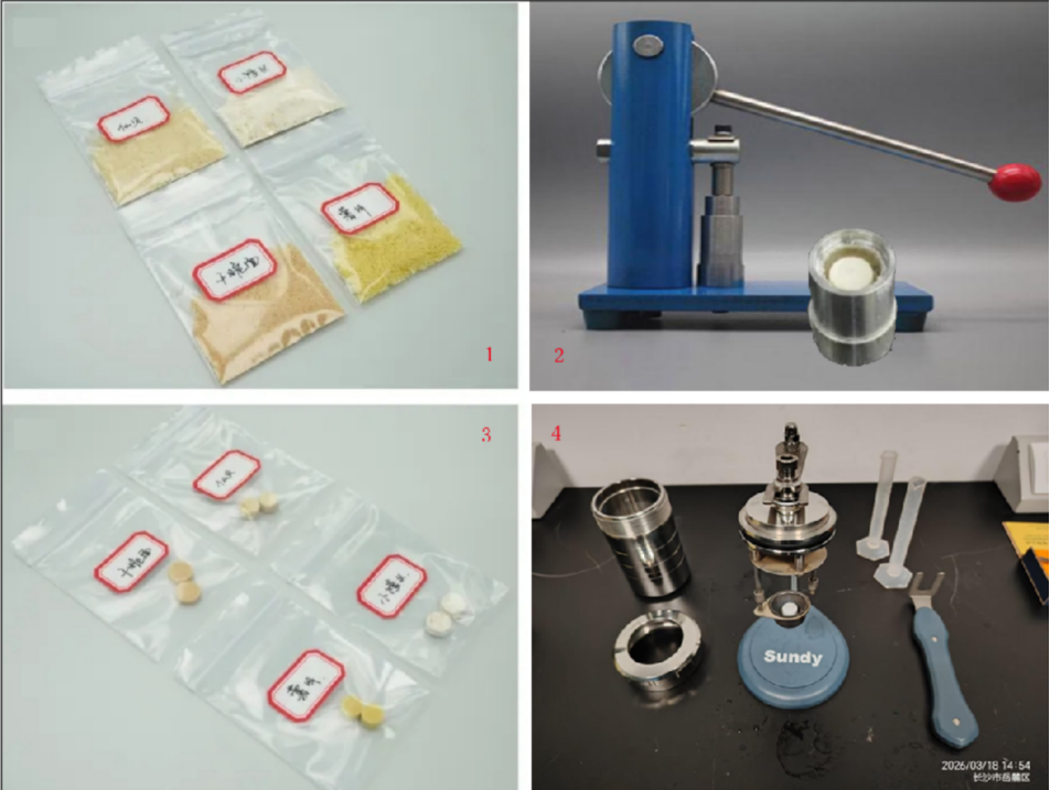 Prior to experimentation, all samples were crushed and pelletized to guarantee the uniformity and consistency of the test specimens, as shown in Figure 3.